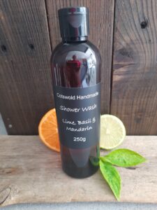 We have made our shower wash with no sls or salt. It is very skin kind and only a small amount is required to give a good, smooth lather. It does not leave skin feeling dry after showering. It is offered in Lavender & Geranium which is made with essential oils, and we have used fragrance oil for Lime, Basil & Mandarin.
